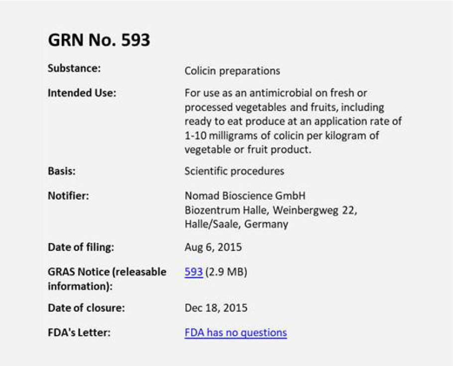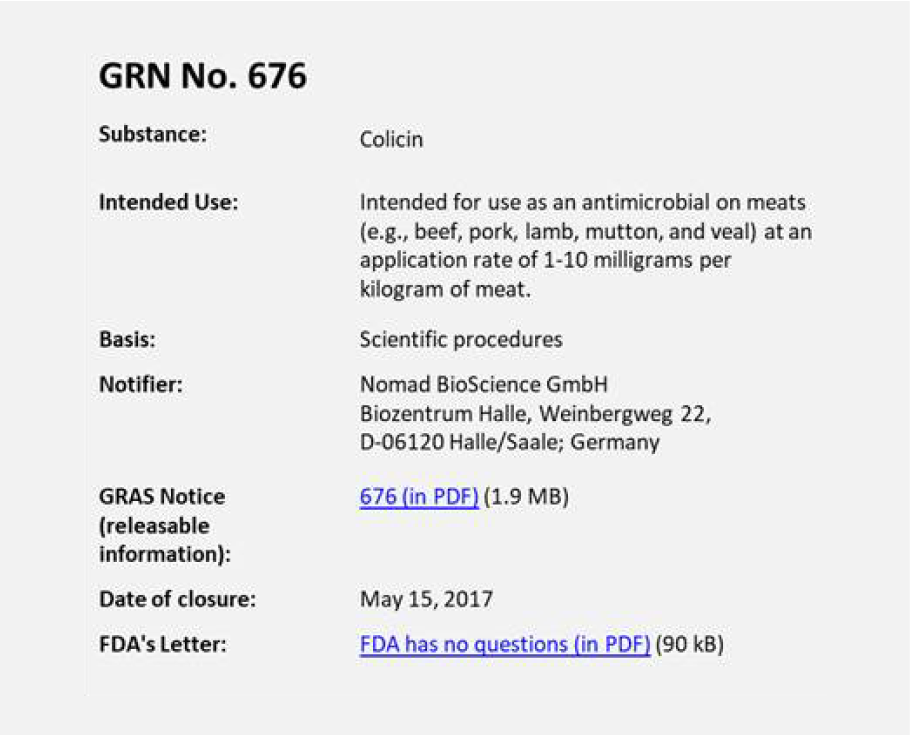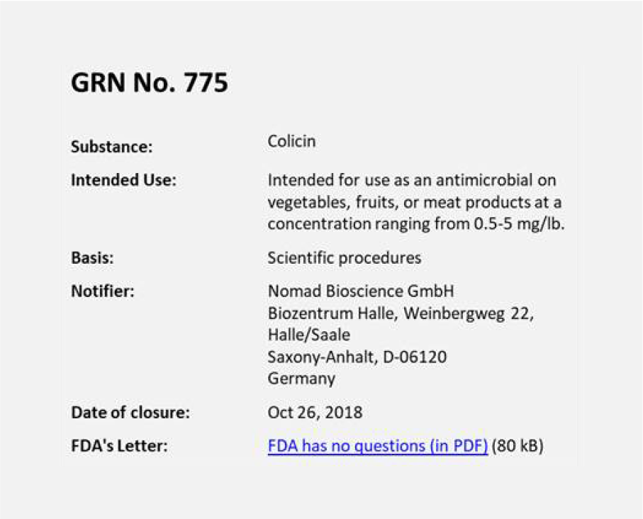 GRAS status for our first colicin products in: